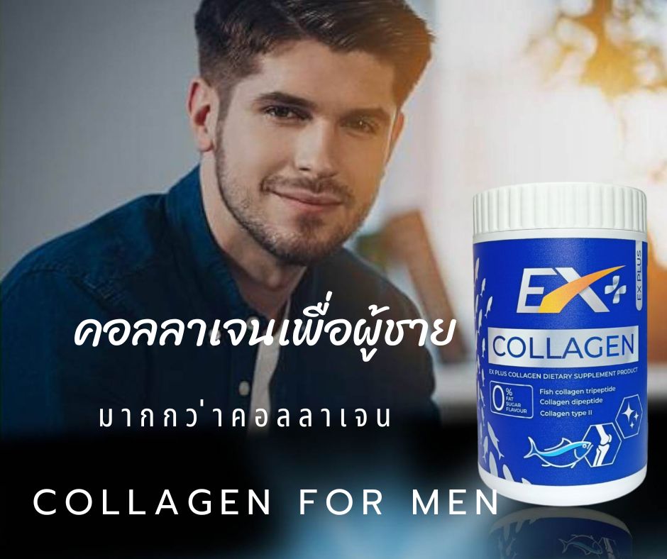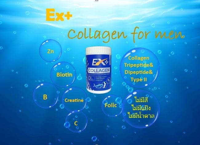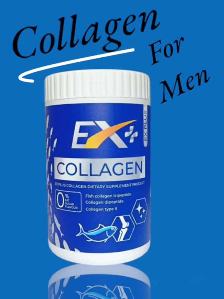 Ex Plus Collagen คอลลาเจน สูตรพรีเมี่ยม เพื่อคุณผู้ชายโดยเฉพาะ ขนาดบรรจุ 100,000 มิลลิกรัม (100กรัม) /อย.10-1-20960-5-0201 ส่วนประกอบสำคัญ collagen, calcium, shark cart large power, egg white protein, vit c, folic acid, biotin, Zinc, etc.
